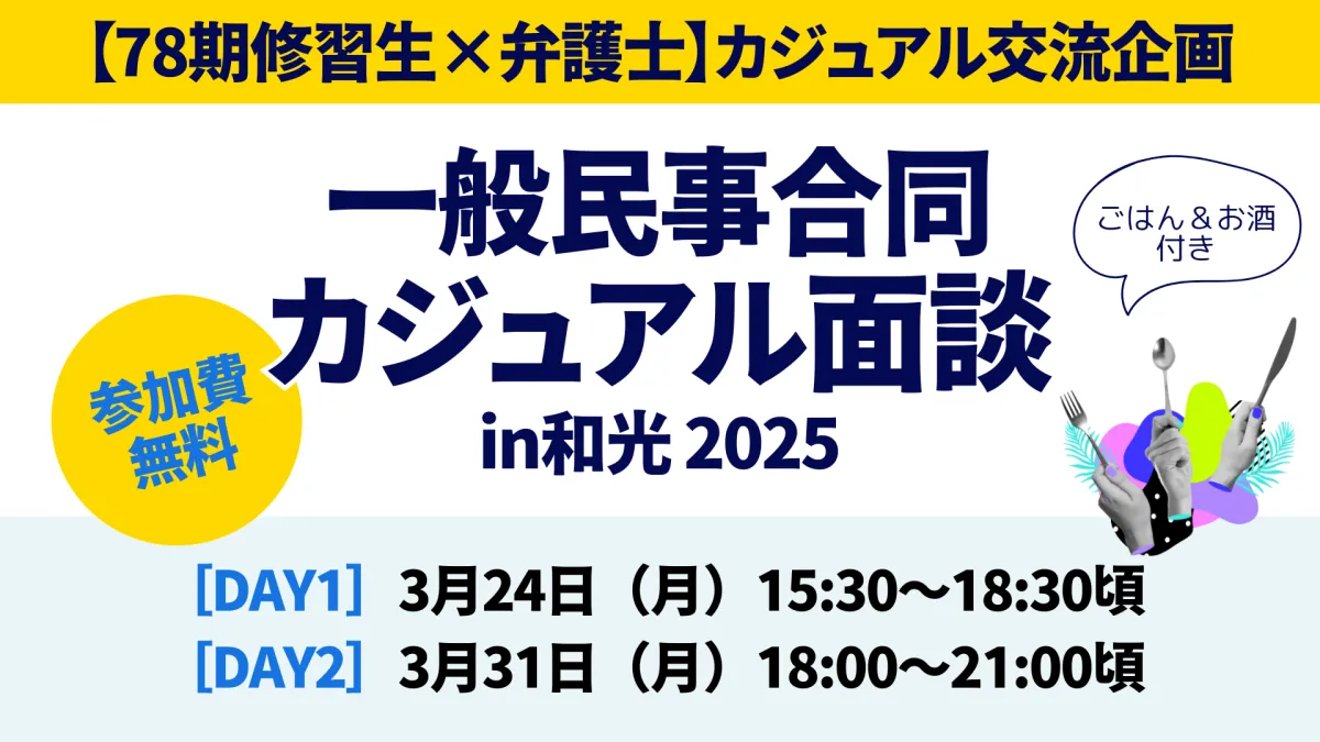 2025年、東京都品川区に本社を置く株式会社カケコムが、78期司法修習生を対象にした特別なイベント『一般民事合同カジュアル面談』を和光市で開催します。このイベントは3月24日と31日の2日間に渡り、弁護士を目指す求職者と法律事務所が気軽に交流する場として設けられています。