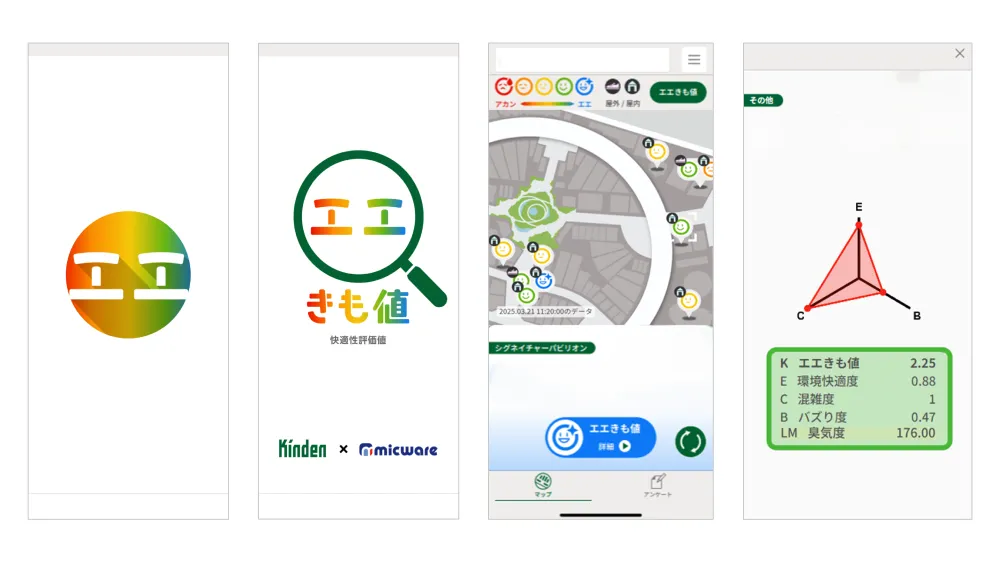 ミックウェアは、万博の「未来社会ショーケース」において、きんでんの快適性評価指標である「エエきも値」を会場地図上に視覚化するためのスマートフォンアプリを開発しました。このアプリは、来場者に効率的に快適な空間情報を提供することを目的としています。