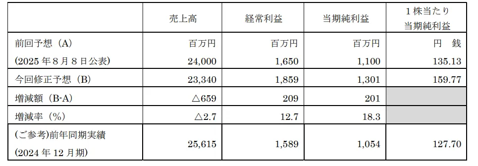 業績予想についてはまだ決算手続きが進行中であり、最終的な発表は2025年の2月13日を予定していますが、現時点での業績動向と配当政策の強化を反映した修正は、株主の皆様にとって良いニュースとなるでしょう。