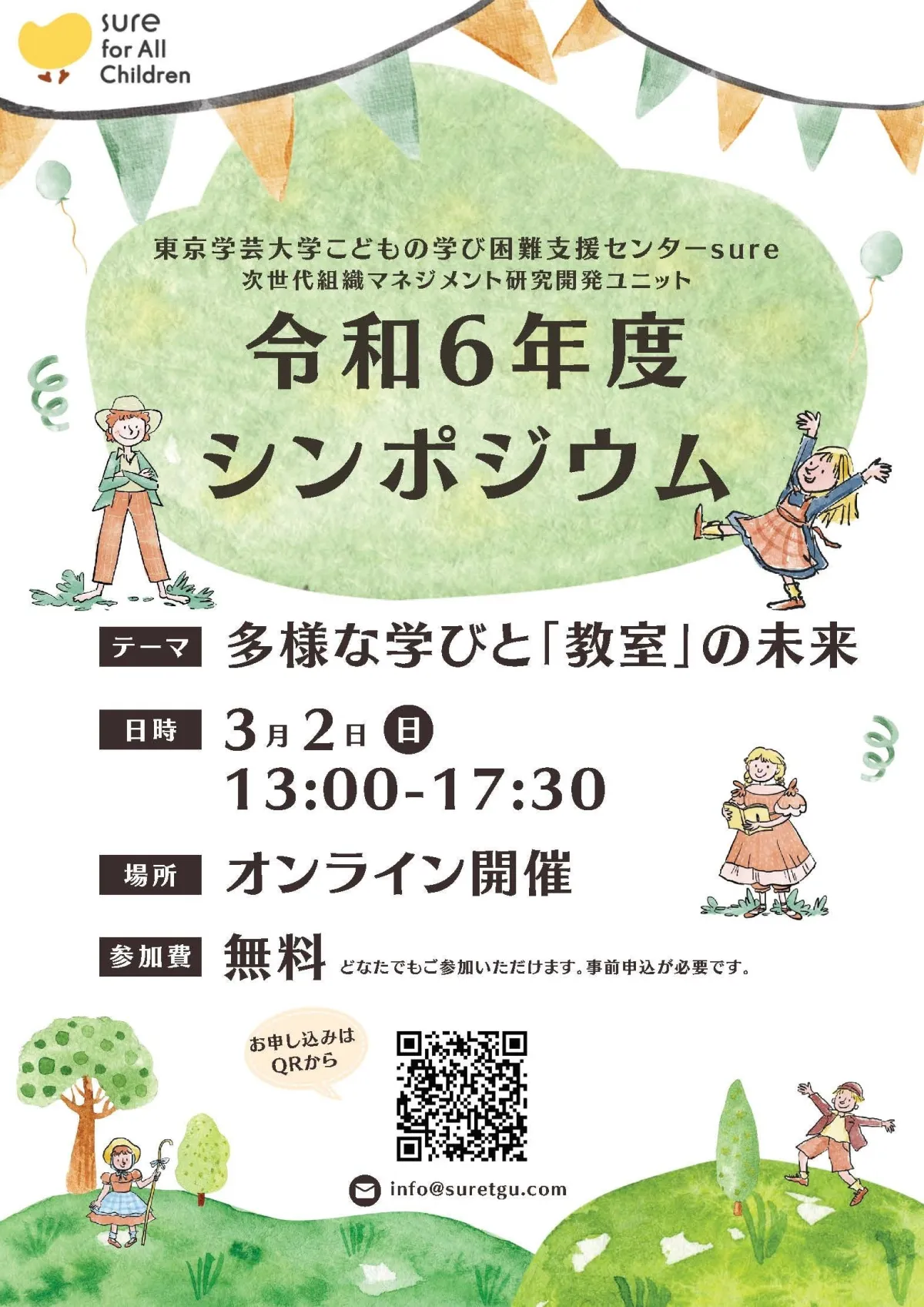 東京学芸大学こどもの学び困難支援センターsureは、2025年3月2日(日)に「令和6年度シンポジウム」を開催することをお知らせします。このシンポジウムでは、「多様な学びと『教室』の未来」というテーマを取り上げ、教育環境の変化について考察します。