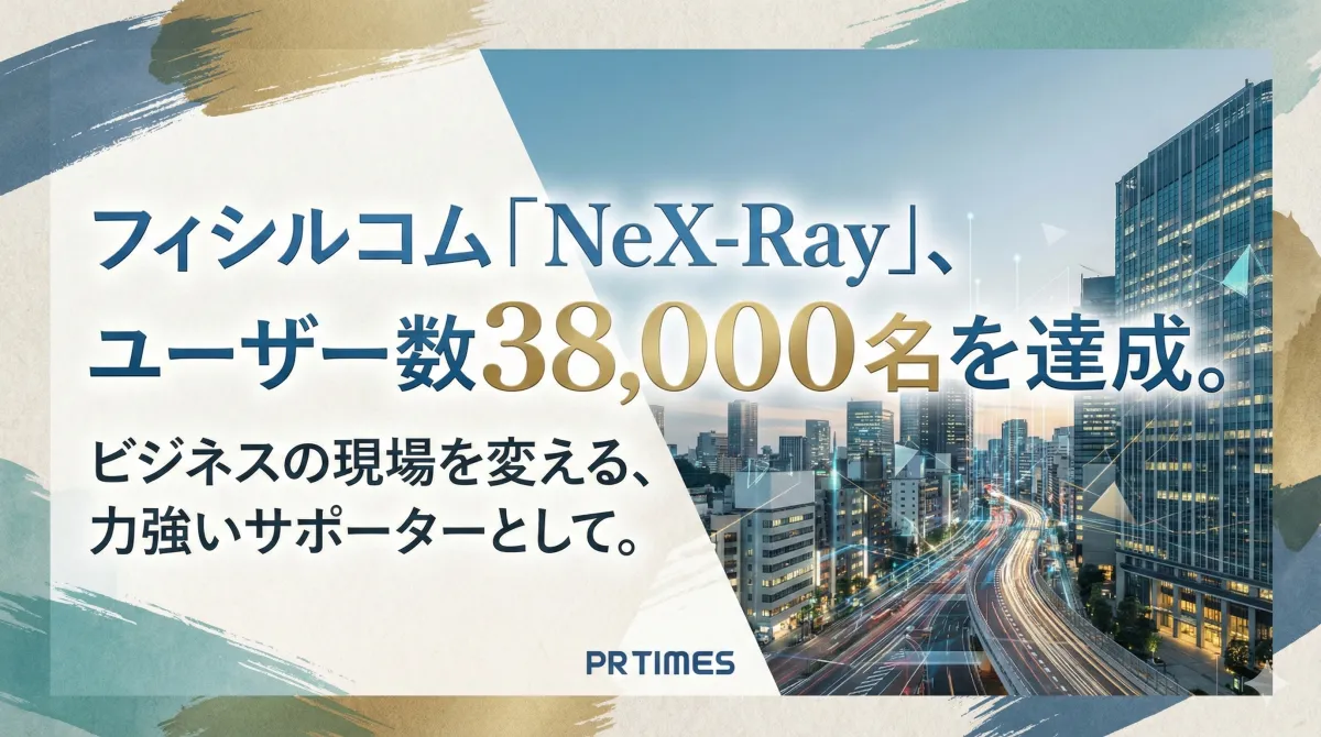 フィシルコムが提供するビジネスDX推進サービス「NeX-Ray」は、ユーザー数が38,000名を超える大きな成長を遂げました。この成果は、日頃から支えてくださる皆様のおかげであり、感謝の気持ちを込めてお伝えします。新たにNeX-Rayを利用される方々にも心より感謝申し上げます。