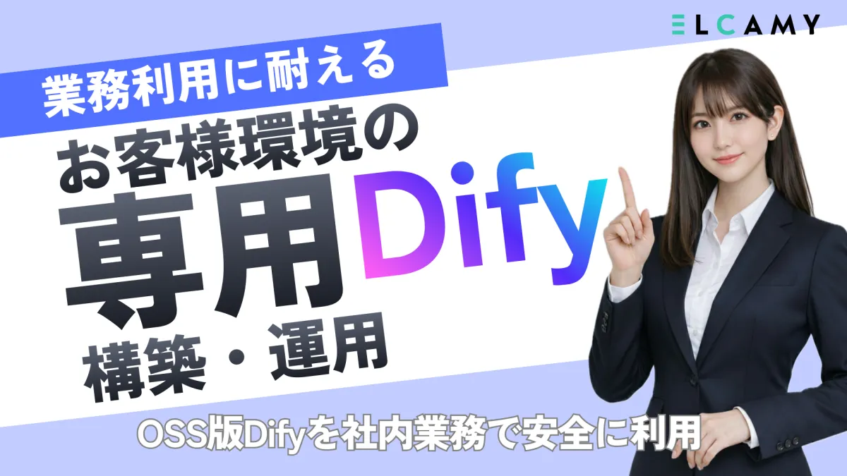 株式会社Elcamy(所在地:東京都渋谷区)は、OSS版Difyを企業向けに構築・運用支援する新しいサービスを開始しました。このサービスは、特に企業の業務利用を前提に設計されており、Difyの効果的な活用をサポートします。
