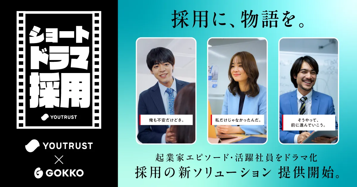 採用市場は年々競争が厳しくなる中、特に若い人材を獲得するのが難しくなっています。従来のような募集要項の提示では、候補者の興味を引き続けることが難しく、企業と候補者の人間的なつながりをいかに育むかが重要視されています。GOKKOはこのニーズに応え、短尺のドラマ制作を得意とする中で、YOUTRUSTとの協業を進めてきました。