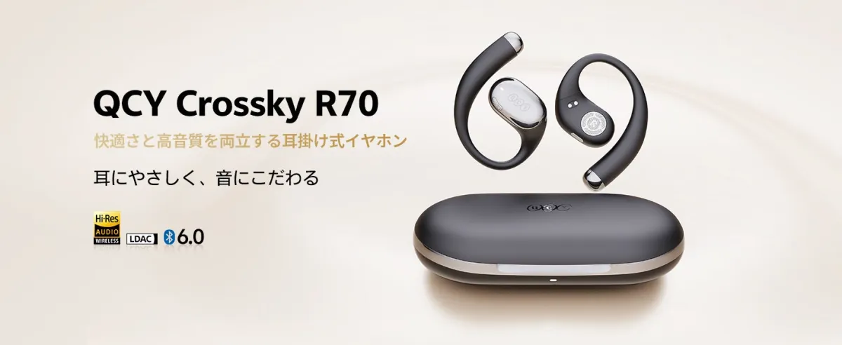 中国広東に本社を構えるオーディオ専門ブランド、QCYが2025年6月20日から販売する最新の完全ワイヤレスイヤホン「Crossky R70」の情報が明らかになりました。これまでにないオープンイヤー型のデザインを採用し、耳を塞がずに周囲の音も認識できる実用性が特徴です。