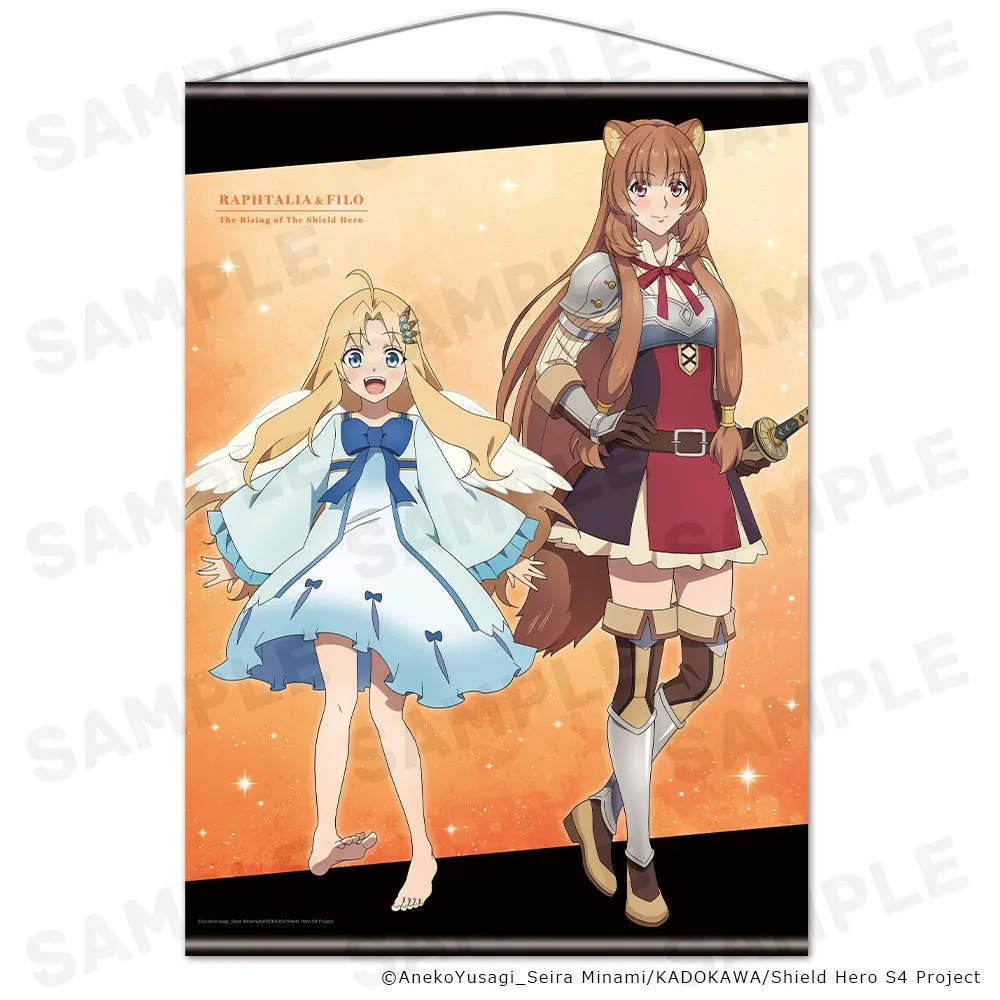 B2タペストリーは、ラフタリアとフィーロをテーマにしたデザインです。サイズはB2(728×515mm)で、素材にはポリエステルスエードを使用しており、しっかりとした質感を持っています。タペストリーの上部には紐が付いており、壁に簡単に掛けることができます。人気キャラクターたちが描かれたこのアイテムは、部屋を彩る素敵なアクセントになること間違いありません。