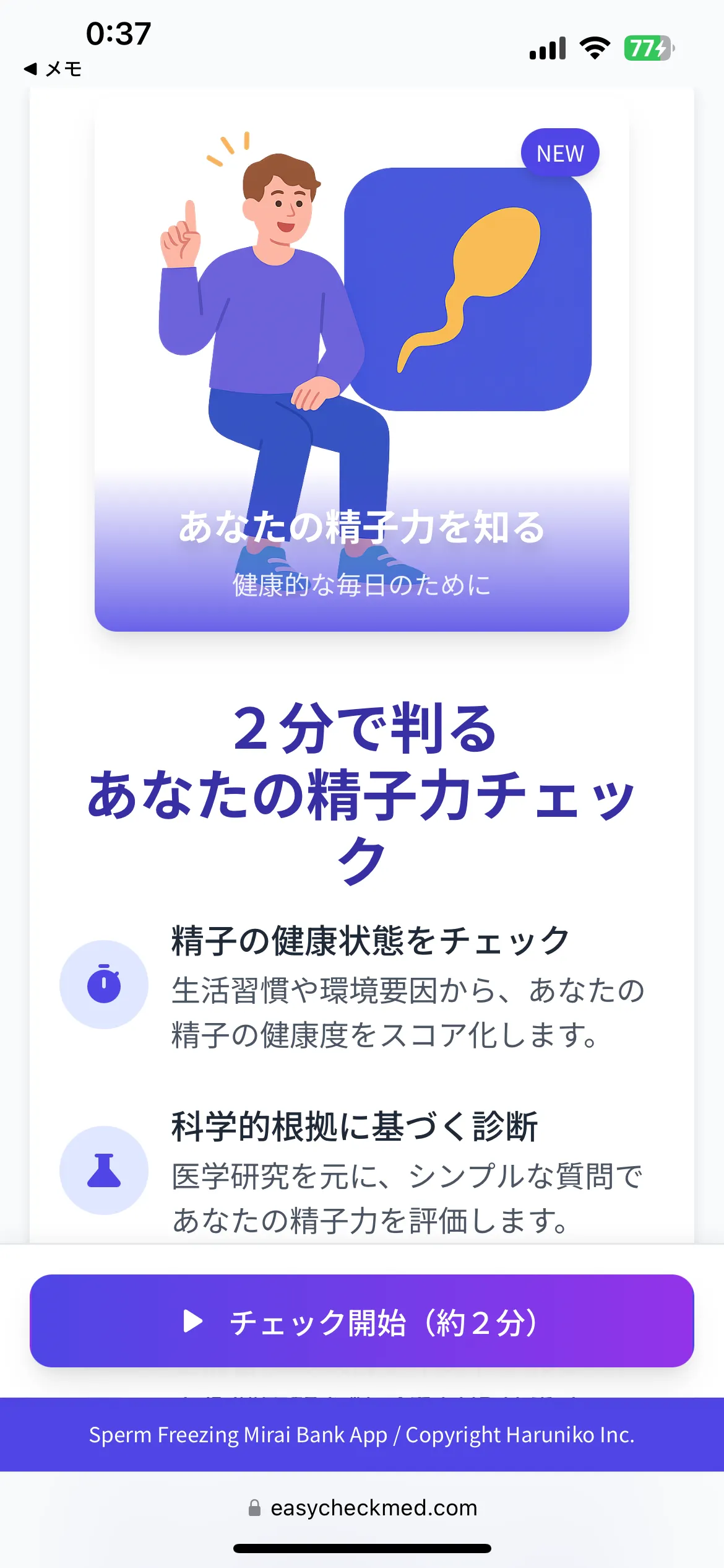 『精子力チェッカー』は、ユーザーが年齢や身長、体重といった基本情報を入力し、生活習慣に関するいくつかの質問に答えるだけで、AIがその人の精子力を数値化します。このプロセスは非常にシンプルで、ゲーム感覚で利用できるため、これまで精子検査に対して拒否感を持っていた男性も気軽に試すことができます。