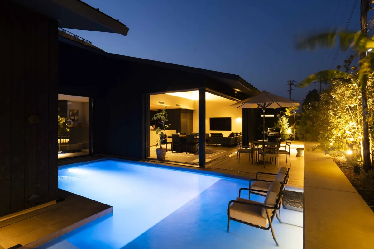 「THE GOAT AWAJI」は、いずれの客室にも広々としたリビングダイニングや、専用のサウナ、そしてジェットバスを完備。家族や友人たちと一緒にプライベートな空間で過ごせる贅沢は、日常を忘れさせてくれます。また、屋外のテラスやプールも完備しており、晴れた日には日光浴やBBQを楽しむことも可能です。