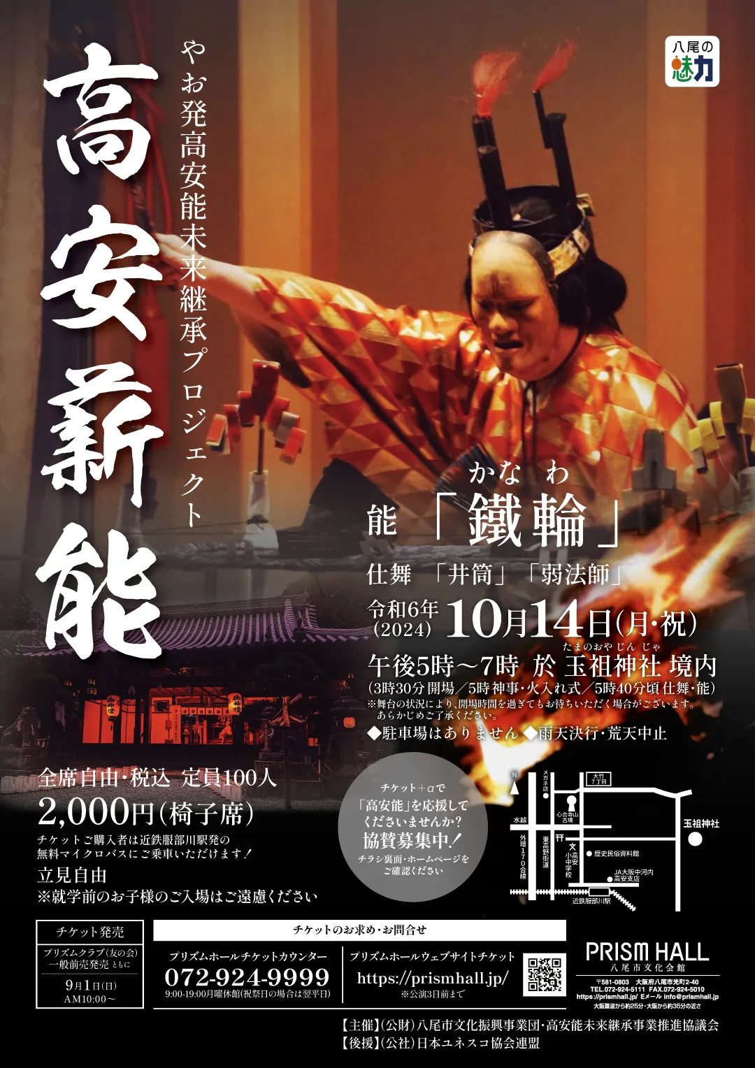 今回、高安地域に位置する式内社・玉祖神社にて特別な薪能『鐵輪』が開催されます。このイベントは、重要無形文化財の保持者たちが多数参加する上質な能楽公演であり、観客に秋の夕焼けと八尾市街の美しい夜景を楽しみながら、能楽の幽玄の世界に浸る機会を提供します。