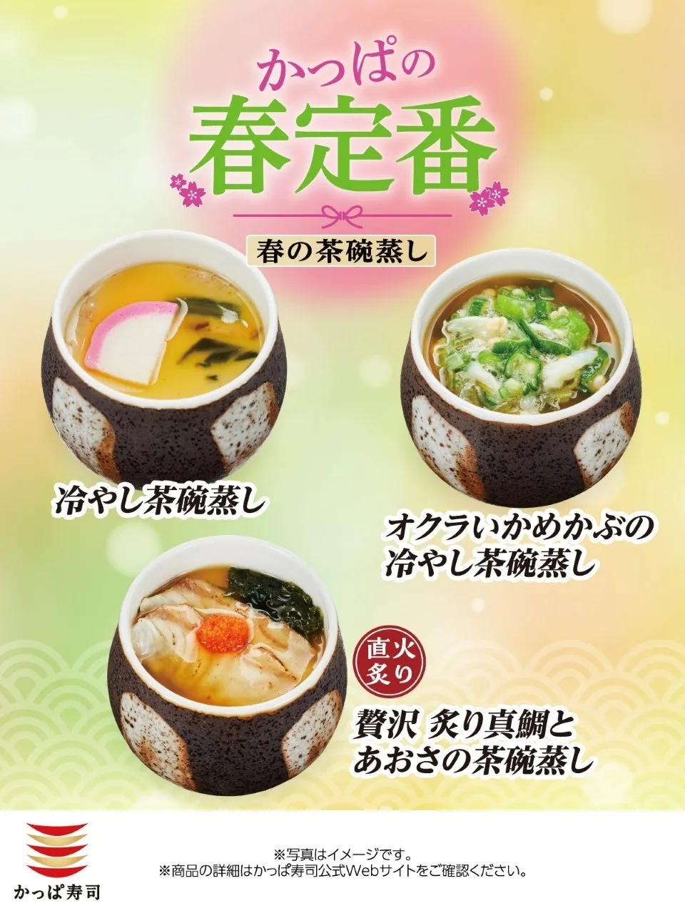 これらの新メニューは、春の食事シーンを華やかに彩る一品としてご家庭での食事を、さらに楽しくすることでしょう。毎日の食卓に新しい喜びをもたらすかっぱ寿司の茶碗蒸しは、家族連れやカジュアルなお友達との集まりにもぴったりです。