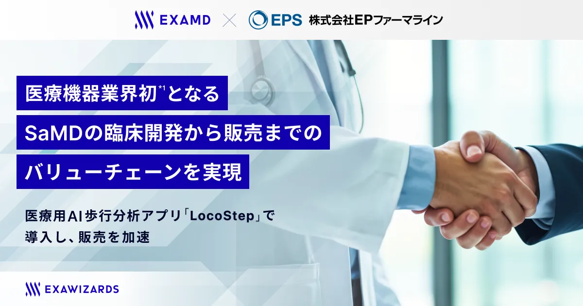 株式会社エクサウィザーズのグループ会社であるExaMD(東京都港区)は、EPNextSの傘下であるEPファーマライン(東京都豊島区)との業務提携により、医療機器業界初のソフトウェア医療機器(SaMD)の販売から債権管理までのバリューチェーンを確立しました。この提携によって、SaMDの開発、製造販売をワンストップで行う体制が整い、今後の医療現場における技術の導入が加速すると期待されています。