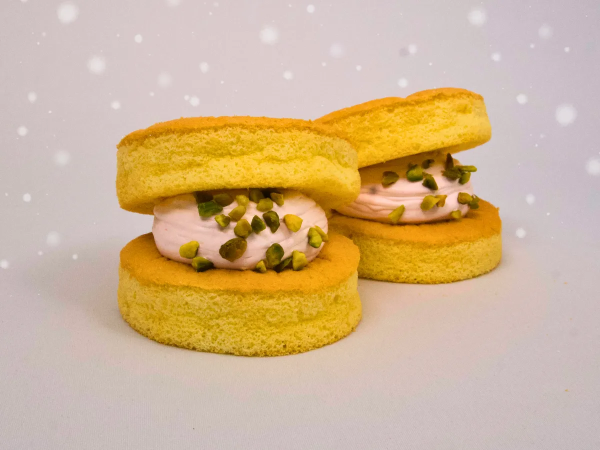 NOSTA CAFEでは、冬限定のスイーツとして「NOSTA パンケーキサンド」が新たに加わりました。このパンケーキサンドは、ふんわりとした生地に、甘さ控えめのホイップクリームを挟んでいます。さらに、いちごクリームとピスタチオの絶妙な組み合わせが特徴で、冬にぴったりの華やかな一品です。お値段は495円。
