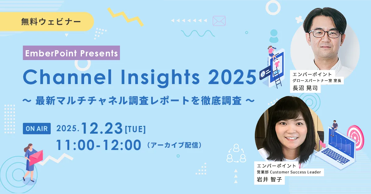 エンバーポイント株式会社は、2025年8月に開催し多くの反響を得た「Channel Insights 2025 ~最新マルチチャネル調査レポートを徹底調査~」を再配信することを発表しました。年末が近づく中、多くのマーケティング担当者が2026年に向けての計画を練っていることが予想される中、見逃した方やさらに具体的なデータが欲しい方にとって最適な機会となります。