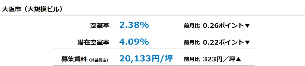 大阪市のオフィス市場の動向は、今後も注意深く見守る必要があります。空室率の低下と賃料の上昇が続く中で、企業のオフィス戦略がどのように変わっていくかが焦点となります。