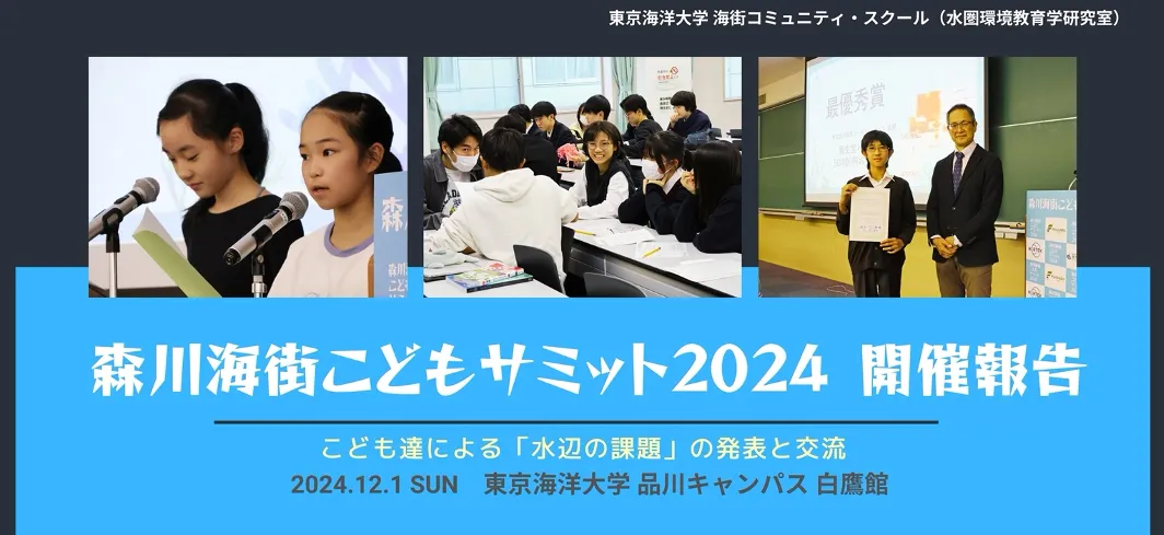 2024年12月1日、東京海洋大学において「森川海街こどもサミット2024」が開催されました。この国際サミットには、全国から100人の子どもたちが集まり、地域の水辺に関する課題について発表を行いました。