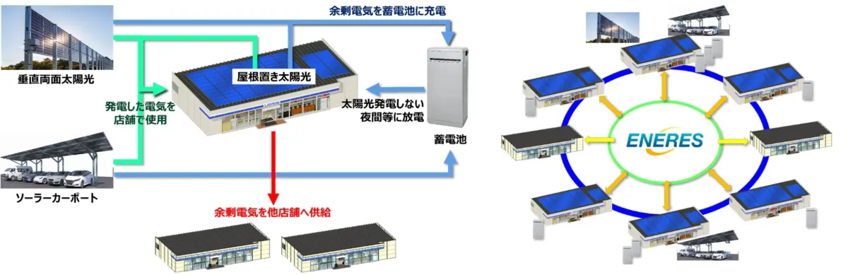実証の対象は、群馬県内にある26店舗です。それらの店舗には、太陽光発電設備や蓄電池設備が設置され、計32店舗の電力を統合制御します。このために、エナリスの知見を活かし、発電量の予測や蓄電池の制御が行われる予定です。特に、発電設備を新たに設置できない店舗に対して効率的に再生可能エネルギーを融通することで、全体のCO2排出量の削減と電力需給のバランスを取ることを目指します。