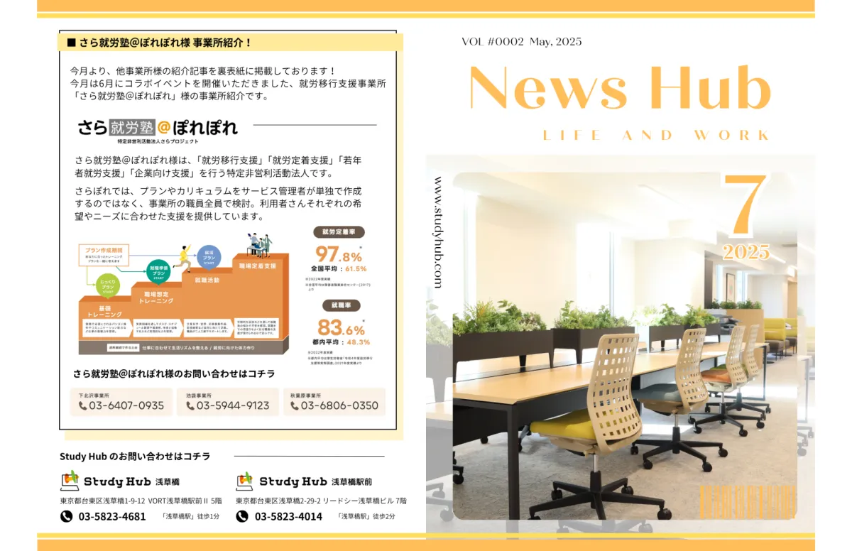 月刊『News Hub』を通じて、より多くの方が就労支援の可能性に気づき、前向きな一歩を踏み出すきっかけとなることを願っています。