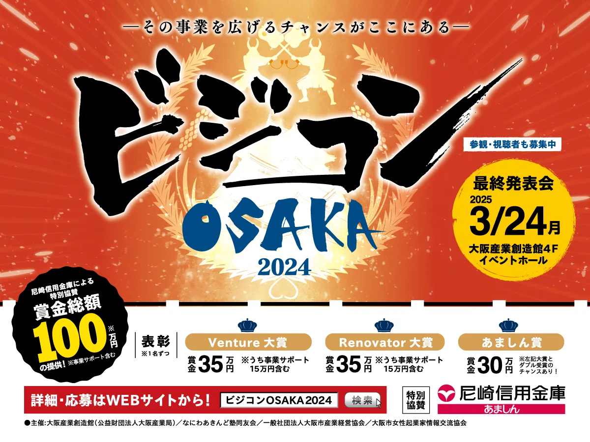 2025年3月24日、大阪産業創造館にて、ビジネスプランコンテスト「ビジコンOSAKA 2024」の最終発表会が行われます。このコンテストは、大阪産業局が主催し、新たな価値を生み出す起業家と事業者を支援することを目的としています。特に5年未満のベンチャー企業と5年を超える企業が集うこのイベントは、起業家にとって貴重な機会です。