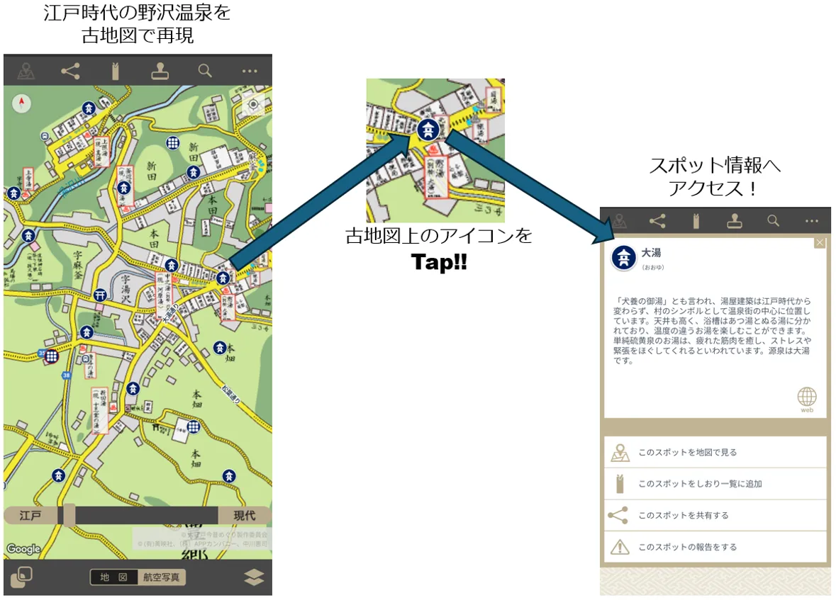 古地図アプリ「大江戸今昔めぐり」は、野沢温泉村の魅力を発信する重要なツールとして位置づけられています。アプリを使って、地域の過去の姿と現在の観光地を同時に味わい、自身の旅をより豊かにする体験をぜひお届けしたいと思います。