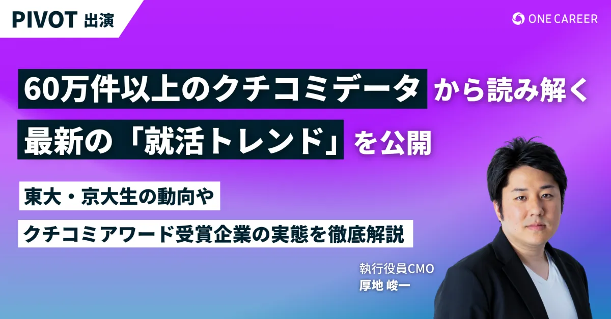 株式会社ワンキャリアは、就活支援サービスを提供し、多くの学生や企業から高い評価を受けています。この度、ビジネス映像メディア「PIVOT」の人気番組『ビジネス虎の巻』に出演し、60万件以上のクチコミデータに基づく最新の就活トレンドを解説しました。番組は全2回にわたり、各回で異なるテーマに焦点を当てています。