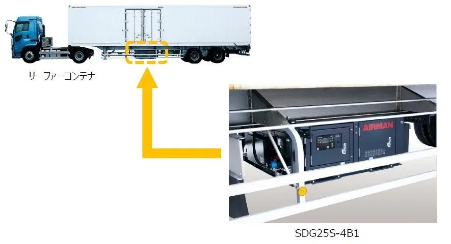 「SDG25S-4B1」は、リーファーコンテナ向けの電源供給用途に最適であり、港湾運用や陸上輸送、冷凍物流業者など、さまざまな業種で活用が期待されています。物流業界においては、過酷な条件に対応し高い運用効率が求められるため、AIRMANの発電機は現場のニーズに応えられる設計となっています。