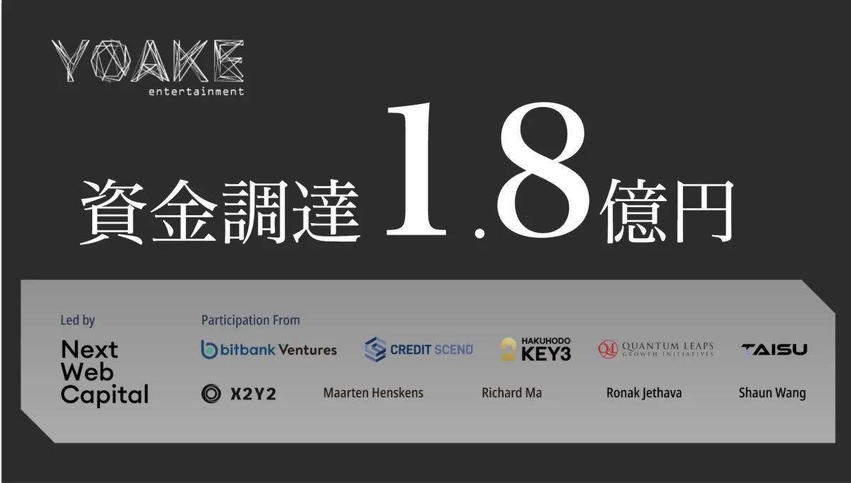 株式会社YOAKE entertainment(以下「YOAKE」)は、次世代エンターテインメントプラットフォームを構築するために、約1.8億円(125万米ドル)の資金調達を完了したことを発表しました。これは、ブロックチェーン技術を基盤とした新たなエンターテインメント体験を提供するための重要なステップとなります。