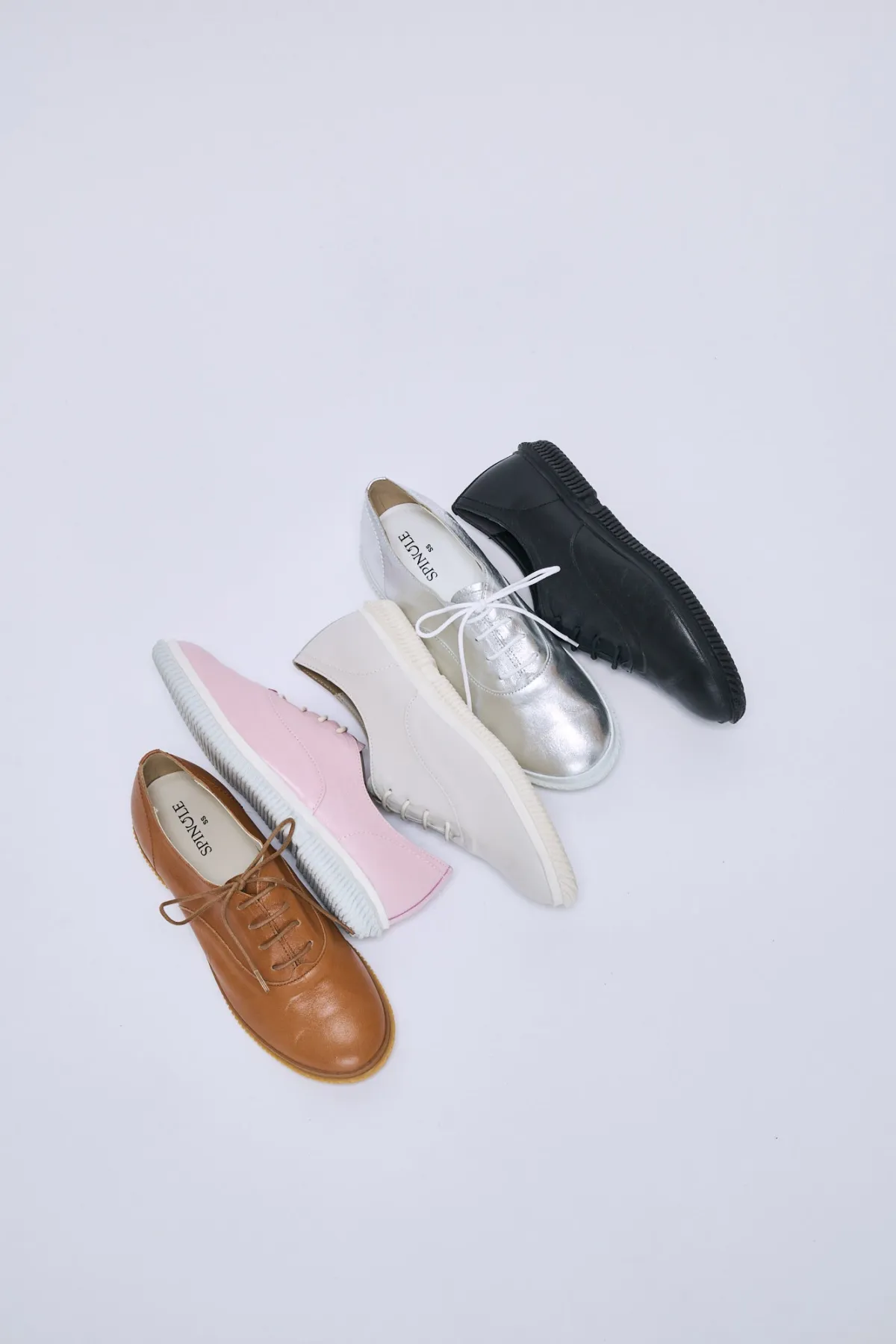「SP-1833」の最大の特徴は、そのマニッシュなデザイン。もともと男性用のフォーマルシューズをモデルにした内羽根形式のプレーントゥは、ビジネスシーンやフォーマルな場でも信頼感を与えつつ、カジュアルなスタイルにもマッチします。春の新生活や式典の場面で、適切かつオシャレな選択肢となることでしょう。
