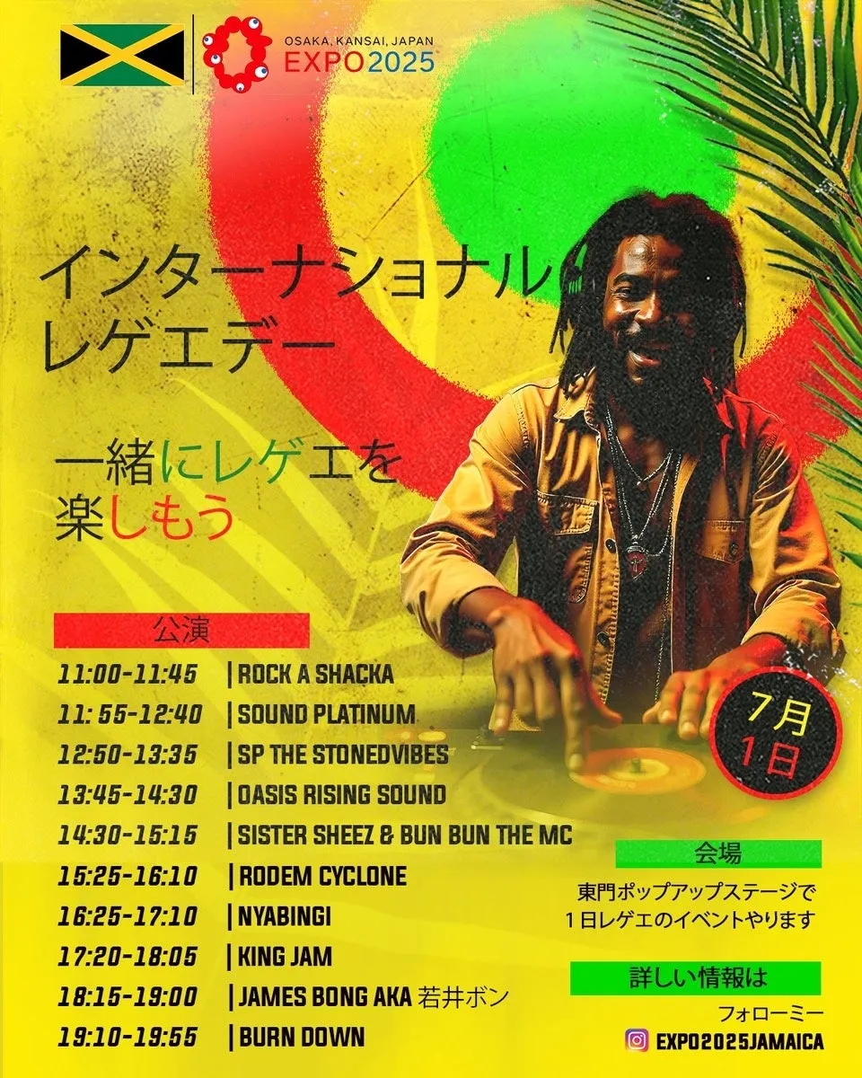 2025年7月1日、大阪・関西万博の「Commons-B」パビリオン内にて、ジャマイカ主催のインターナショナルレゲエデーが開催されます。本イベントは、レゲエ音楽を通じてジャマイカの文化を紹介するものであり、11:00から19:55までの間、参加者は多彩なアーティストのパフォーマンスを楽しむことができます。