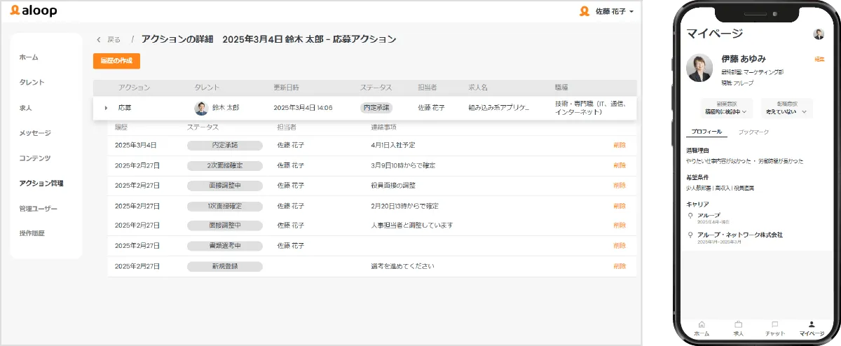 このような背景から、rakumoとパソナがQRテック分野で提携しました。両社はそれぞれの強みを活かし、シナジー効果を生み出すことを目指しています。『aloop』は、企業の人事担当者や経営者を対象に、多様な人材の情報を蓄積・管理し、長期的な関係構築をサポートすることを目的としています。