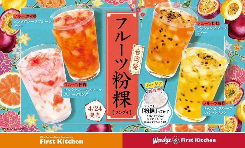 ウェンディーズ・ジャパン株式会社とファーストキッチン株式会社が贈る新感覚ドリンク「フルーツ粉粿」が今年も登場します!4月24日(木)から、ウェンディーズ・ファーストキッチンおよびファーストキッチンで販売がスタートします。この「フルーツ粉粿」は、台湾発祥の伝統的なスイーツで、特にそのぷにぷにとした新食感が特徴です。