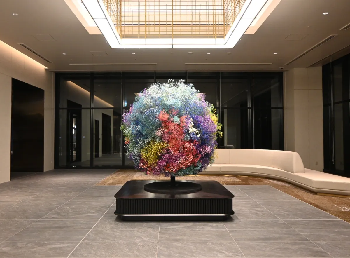 ロビーでは、開業日から売れ残りの花や規格外の花を利用したドライフラワー装飾が設置される予定です。これにより、これまで廃棄される運命にあった花たちが新たな命を吹き込まれ、訪れる人々に四季折々の美しさを提供します。春のテーマは「Spring Light」で、瀬戸内海をイメージして青いかすみ草を中心にした直径1.5mの球体が展示され、まさに春の訪れを感じさせる色彩となっています。