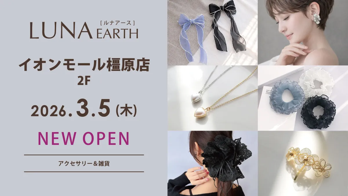 2026年3月5日、奈良県橿原市のイオンモール橿原に、プチプラアクセサリーの新しい店舗「LUNA EARTH」がオープンします。このブランドは、東京都台東区に本社をおく株式会社エンドレスが運営しており、330円(税込)からというリーズナブルな価格でアクセサリーを楽しめることが特徴です。