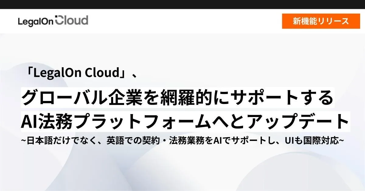 株式会社LegalOn Technologies(以下、LegalOn)が提供するAI法務プラットフォーム「LegalOn Cloud」が、国際的なビジネスを展開する企業のニーズに応えるべく大規模なアップデートを行いました。これにより、日本語だけでなく英語の契約や法務業務にも対応し、ユーザーの利便性を向上させる新機能を追加しました。