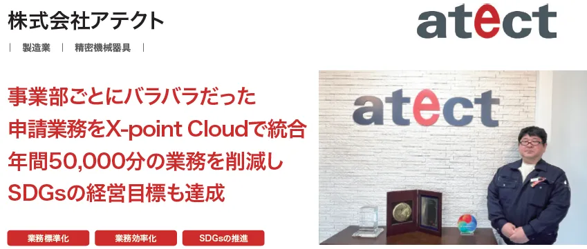 株式会社アテクトは、最近クラウド型ワークフローシステム「X-point Cloud」を導入し、SDGsの目標の一環として押し進めていた年間1万5千枚以上の紙の削減に成功しました。この取り組みは、同社が抱えていたいくつかの課題を解決する重要な一手となりました。