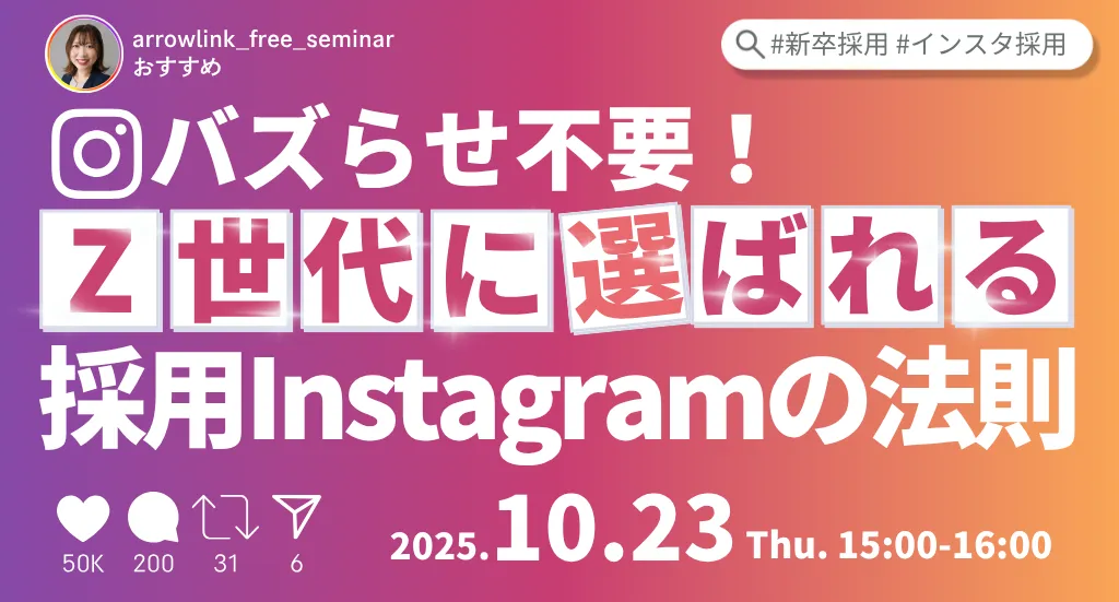 企業がInstagramを利用した採用活動を行う際に直面する問題には、「戦略が欠けている投稿」が多いという現実があります。アカウントを開設し、投稿を続けているにもかかわらず、フォロワーが増えず、興味を引くことができないのです。このような課題を抱える企業に向けて、オンラインセミナー『バズらせ不要!Z世代に選ばれる採用Instagramの法則』が開かれます。