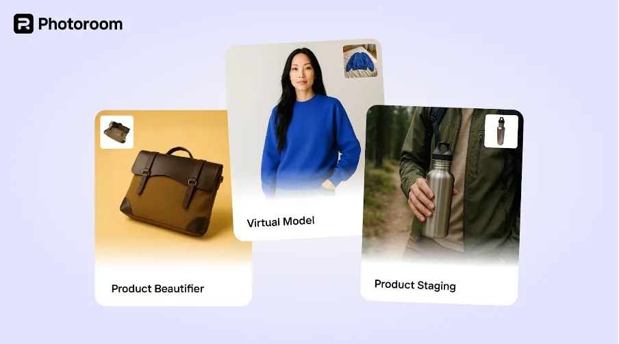 Photoroomが新たに提供開始した機能は「Product Beautifier(プロダクト ビューティファイア)」「Product Staging(プロダクト ステージング)」「Virtual Model(バーチャルモデル)」の三つです。この新機能は、4月23日よりPhotoroomのWeb版で順次利用可能となり、iOSおよびAndroid版も今後アップデートされる予定です。