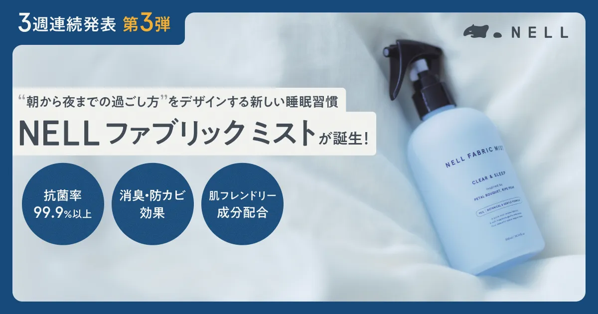 2025年10月9日に、睡眠ブランド「NELL」を展開する株式会社Morghtが新しい商品「NELL ファブリックミスト」を発売します。この製品は“睡眠のためのメンテナンス商品”として位置付けられており、朝のひと吹きで寝具を清潔に保つことを目的としています。また、同日に登場する「NELL かけ布団」や「NELL ふとん乾燥機」も注目される商品です。