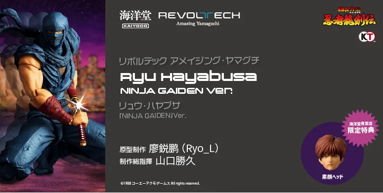 コーエーテクモが誇る忍者のヒーロー、リュウ・ハヤブサがついにリボルテック アメイジング・ヤマグチシリーズに登場します。彼のデビュー作品『忍者龍剣伝』をベースにしたこのフィギュアは、忍者アクションのシンボルともいえる存在感を持っています。