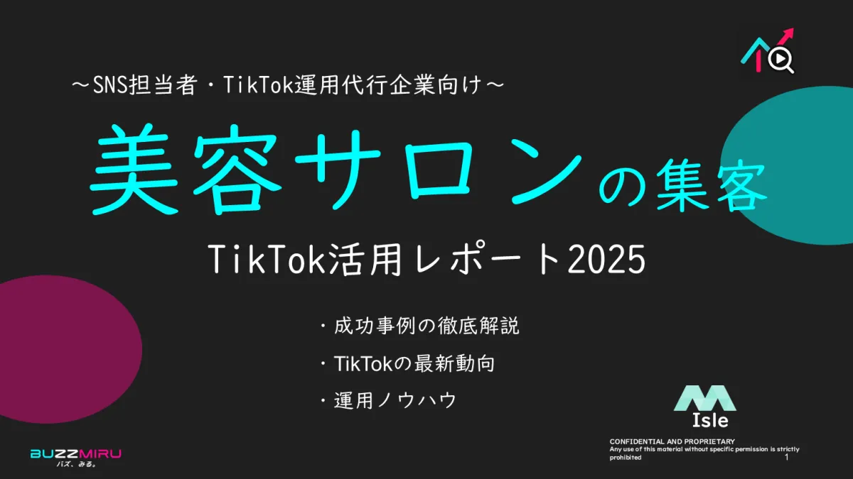 美容業界が直面している集客の課題を解決するために、株式会社Isleが2025年版の「TikTokトレンドレポート」を無料で提供しています。このレポートは、同社の分析ツール「BUZZMIRU」を活用して、40万以上の動画データから得た成功事例や運用ノウハウをまとめたものです。美を追求する美容サロンにとって、SNSはもはや欠かせない存在となっており、その中でも特に急成長中のTikTokをいかに使いこなすかが、商品の知名度や客数の増加につながる鍵となります。