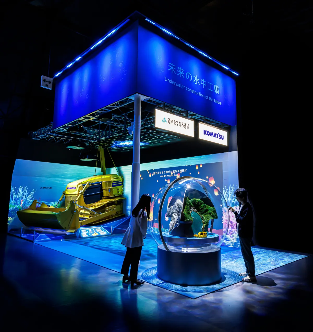 2025年に大阪で開催される日本国際博覧会にて、青木あすなろ建設とコマツによる展示が注目されています。3月10日に開催された「未来社会ショーケース事業」記念式典では、両社が共同で出展する「未来の水中工事」の展示プレイスが初めてお披露目されました。その内容に迫ります。