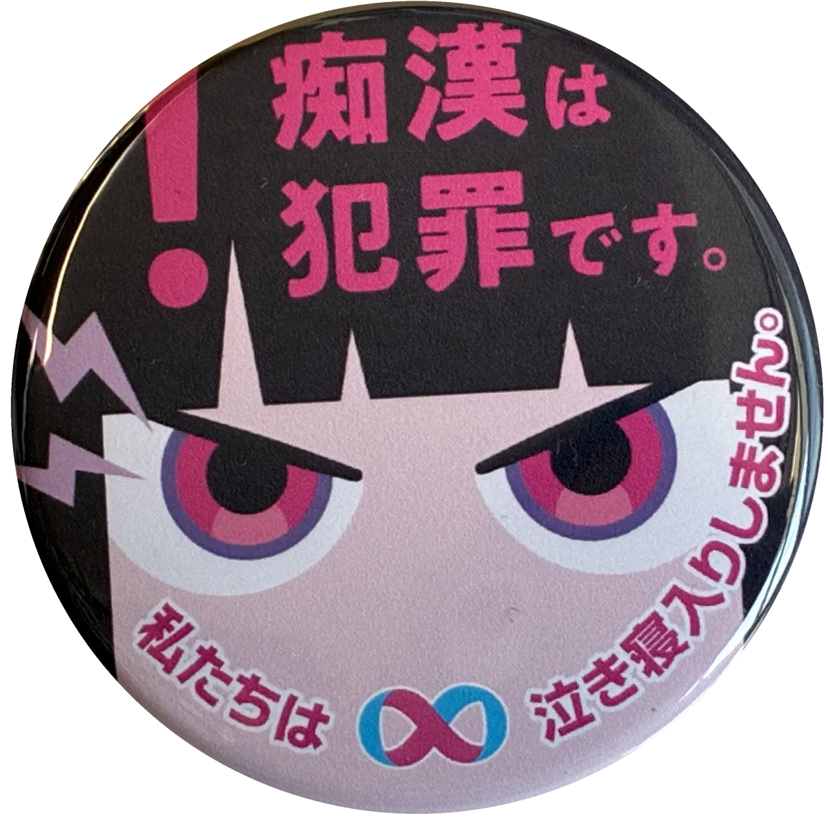 この「痴漢抑止バッジ」は、2015年に都内に住む16歳の女子高校生が考案したものです。彼女は、1年間にわたり電車内で痴漢に遭うという深刻な体験をしました。そのことから「もう二度と同じ思いをしたくない」との強い決意を持ち、「痴漢は犯罪です。私は泣き寝入りしません!」とのメッセージを身に付けて登下校を始めました。この取り組みが実を結び、彼女は以降痴漢に遭わなくなりました。