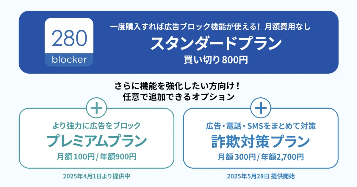 月額300円で提供されるオプションで、280blockerのスタンダードプランと組み合わせて利用することができます。このプランは、トビラシステムズが誇る