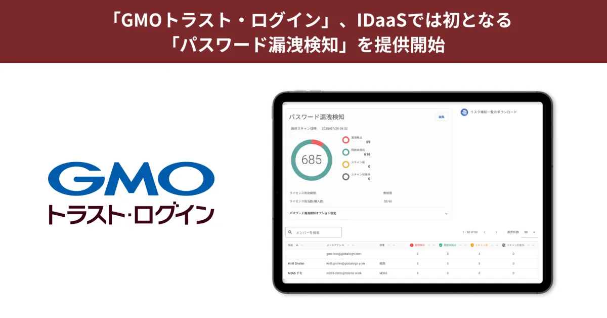 GMOグローバルサイン株式会社が提供する企業向けシングルサインオンサービス「GMOトラスト・ログイン」が、パスワード漏洩検知機能を新たにスタートしました。このサービスは業務用SaaSに設定されたパスワードが外部に漏れていないかを自動でスキャンし、管理者が迅速に確認できる仕組みを実現しています。これにより、企業は従来の定期的なパスワード変更に頼らず、より効果的なセキュリティを保つことが可能になります。