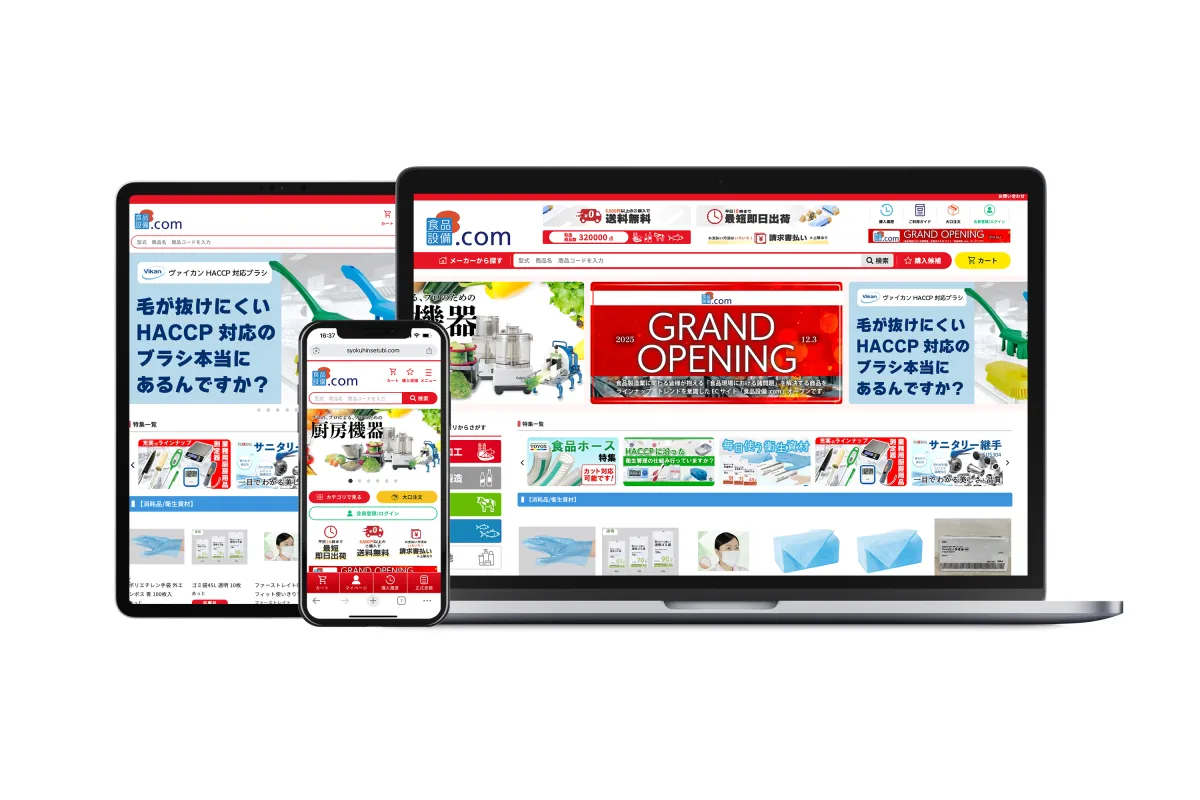 『食品設備.com』は、食品の製造、加工、貯蔵に不可欠な機械や器具を30万点以上取り扱う専門サイトです。国内外で60万点以上の資材を提供し、個別販売から大ロット注文まで柔軟に応じています。これにより、プロの現場で求められる商品をより迅速かつ正確に提供することができます。