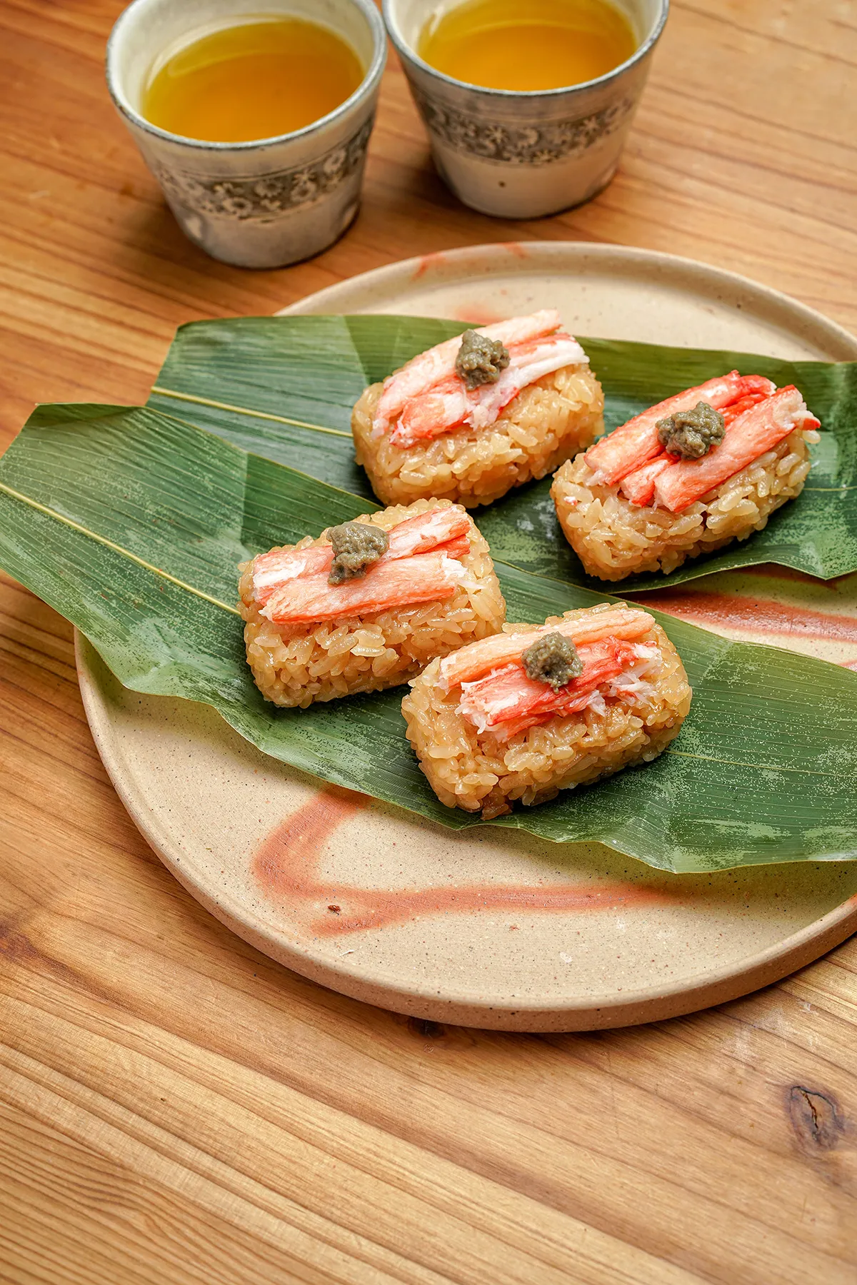 「笹巻き蟹めし」の最大の特長は、国産紅ずわいがにをふんだんに使用している点です。このかには、柔らかさと甘みが強く、食べる者を魅了します。かにだけでなく、笹の葉で包まれたご飯には旨味が凝縮されており、香り高い一品に仕上がっています。