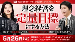 このセミナーでは、株式会社あつまるの代表取締役社長、石井陽介氏をゲストに迎え、理念を経営の武器に変えるための具体的な手法を学びます。ビジネス界で常に注目される「働きがいのある会社ランキング」において上位常連のあつまる社の成功事例をもとに、理念の浸透を数値化する方法論が紹介されます。