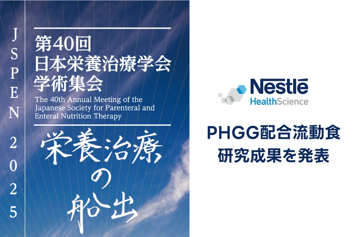 2025年2月14日から15日にかけて横浜市で開催された『第40回日本栄養治療学会学術集会(JSPEN 2025)』では、ネスレ日本株式会社のネスレ ヘルスサイエンスがPHGG(部分加水分解グアーガム)配合流動食に関する重要な研究結果を発表しました。本学会は、静脈・経腸・経口栄養に関する最新の知見が共有される場として、医療関係者の注目が集まっています。