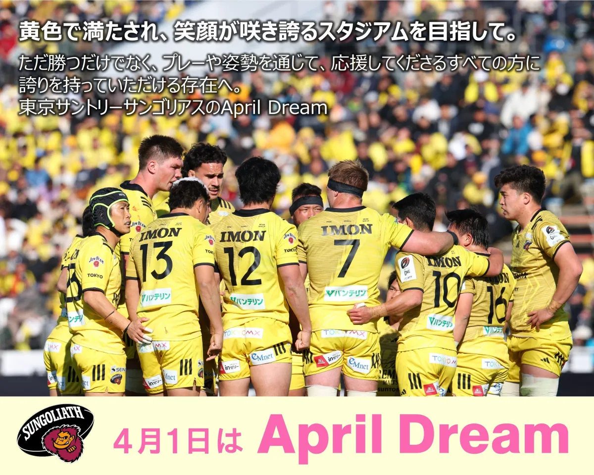 東京サントリーサンゴリアスは、4月1日に特別な夢を発表しました。この日に向けて、同チームは「April Dreamプロジェクト」に参画し、多くの人々に感動を届ける取り組みを進めています。チームは、ただ勝つことだけでなく、応援してくださる方々に誇りを持っていただける存在でありたいと願っています。