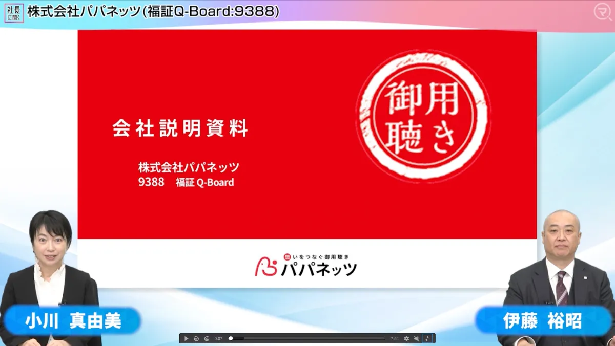 実は、パパネッツは2017年から2025年まで東京証券取引所TOKYO PRO Marketに上場しており、2025年3月には福岡証券取引所Q-Boardに上場しました。この組織変更を機に、彼らは個人投資家への情報発信を強化しています。より多くの地域のニーズを理解し、解決に繋げるために「社長に聞く」への出演は重要なステップとなりました。