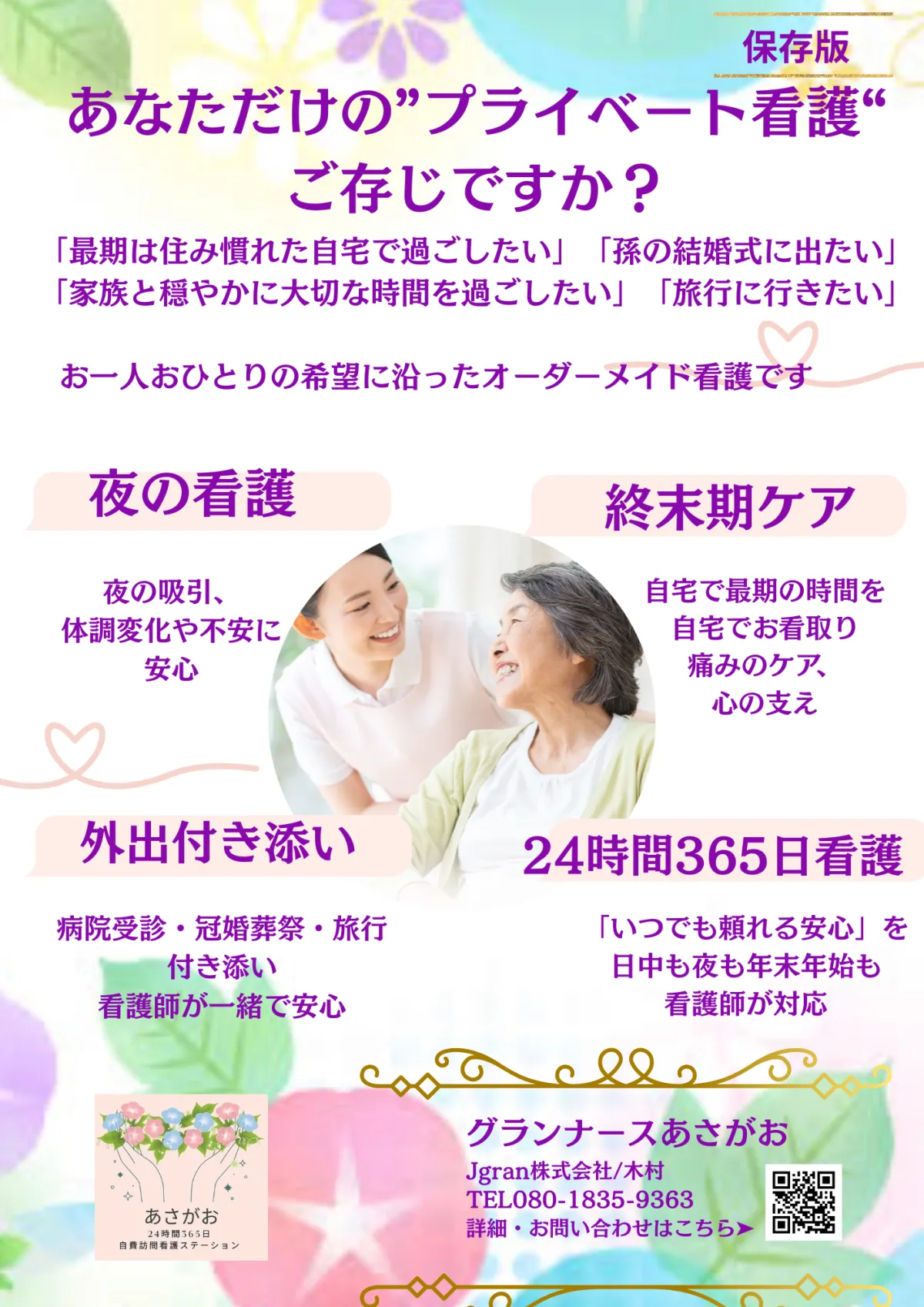 「グランナースあさがお」が提供するレスパイトケアは、ただ介護者を休ませるだけではなく、心の声に耳を傾けることができる貴重な機会になります。あなたが笑顔でいることが、最高の介護につながります。自分自身の心と体をしっかりといたわりながら、愛する人を支えていくために、今こそ「休む勇気」を持ってください。1180