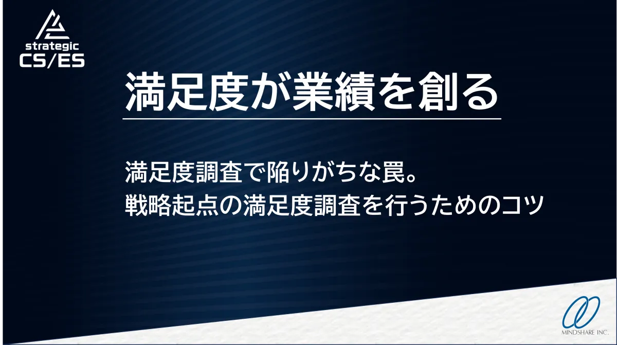 - - タイトル:満足度調査が業績を創る ~満足度調査で陥りがちな罠。戦略起点の満足度調査を行うためのコツ~